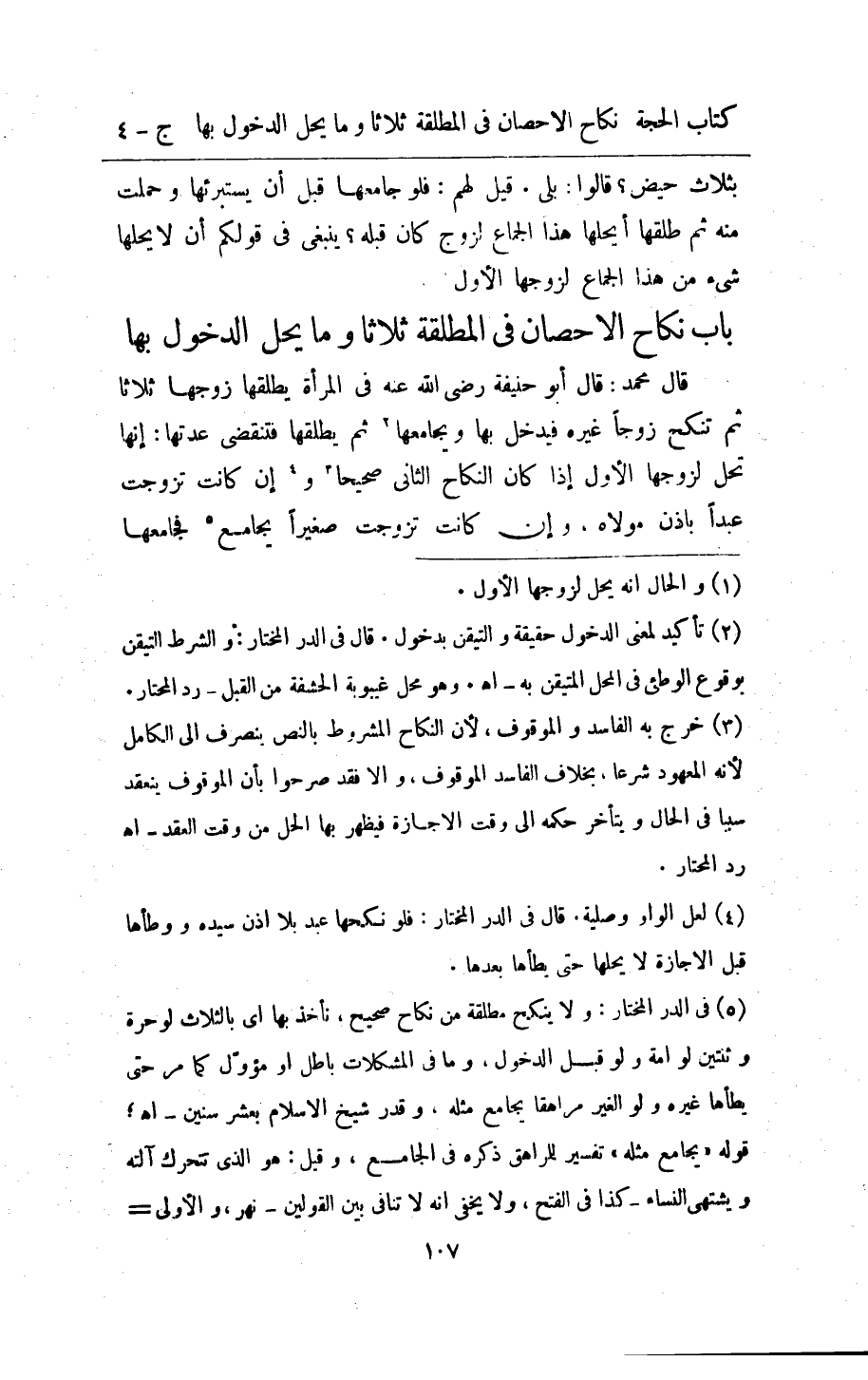 - بَاب نِكَاح الاحصان فِي الْمُطلقَة ثَلَاثًا وَمَا يحل الدُّخُول بهَا