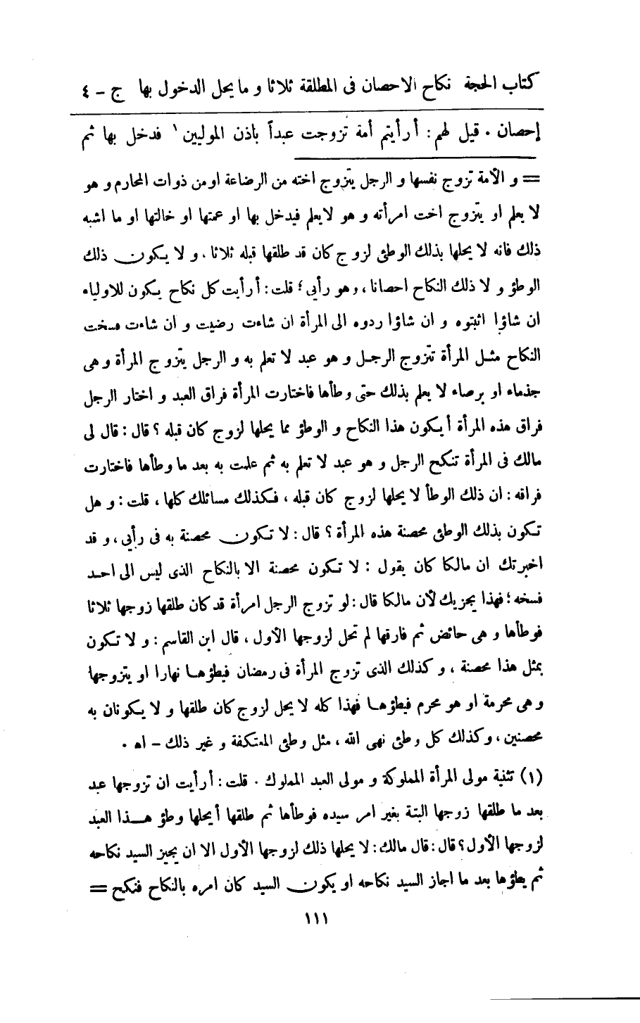 احصان قيل لَهُم ارايتم امة تزوجت عبدا باذن الموليين فَدخل بهَا ثمَّ