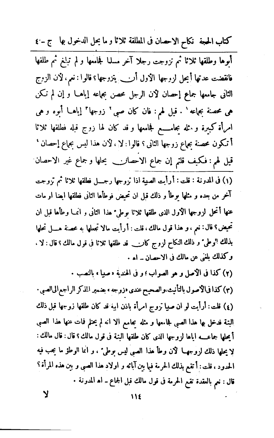 بوها وَطَلقهَا ثَلَاثًا ثمَّ تزوجت رجلا اخر مُسلما فجامعها وَلم تبلغ ثمَّ طَلقهَا فانقضت عدتهَا ايحل لزَوجهَا الاول ان يَتَزَوَّجهَا قَالُوا نعم لَان الزَّوْج الثَّانِي جَامعهَا جماع احصان لَان الرجل مُحصن بجماعه اياها وان لم تكن هِيَ مُحصنَة بجماعه قيل لَهُم فان كَانَ صبي زَوجهَا اياها ابوه وَهِي امراة كَبِيرَة وَمثله بِجَامِع فجامعها وَقد كَانَ لَهَا زوج قبله فَطلقهَا ثَلَاثًا اتكون مُحصنَة بجماع زَوجهَا الثَّانِي قَالُوا لَا لَان هَذَا لَيْسَ بجماع احصان قيل لَهُم فَكيف قُلْتُمْ ان جماع الاحصان يحلهَا وجماع غير الاحصان