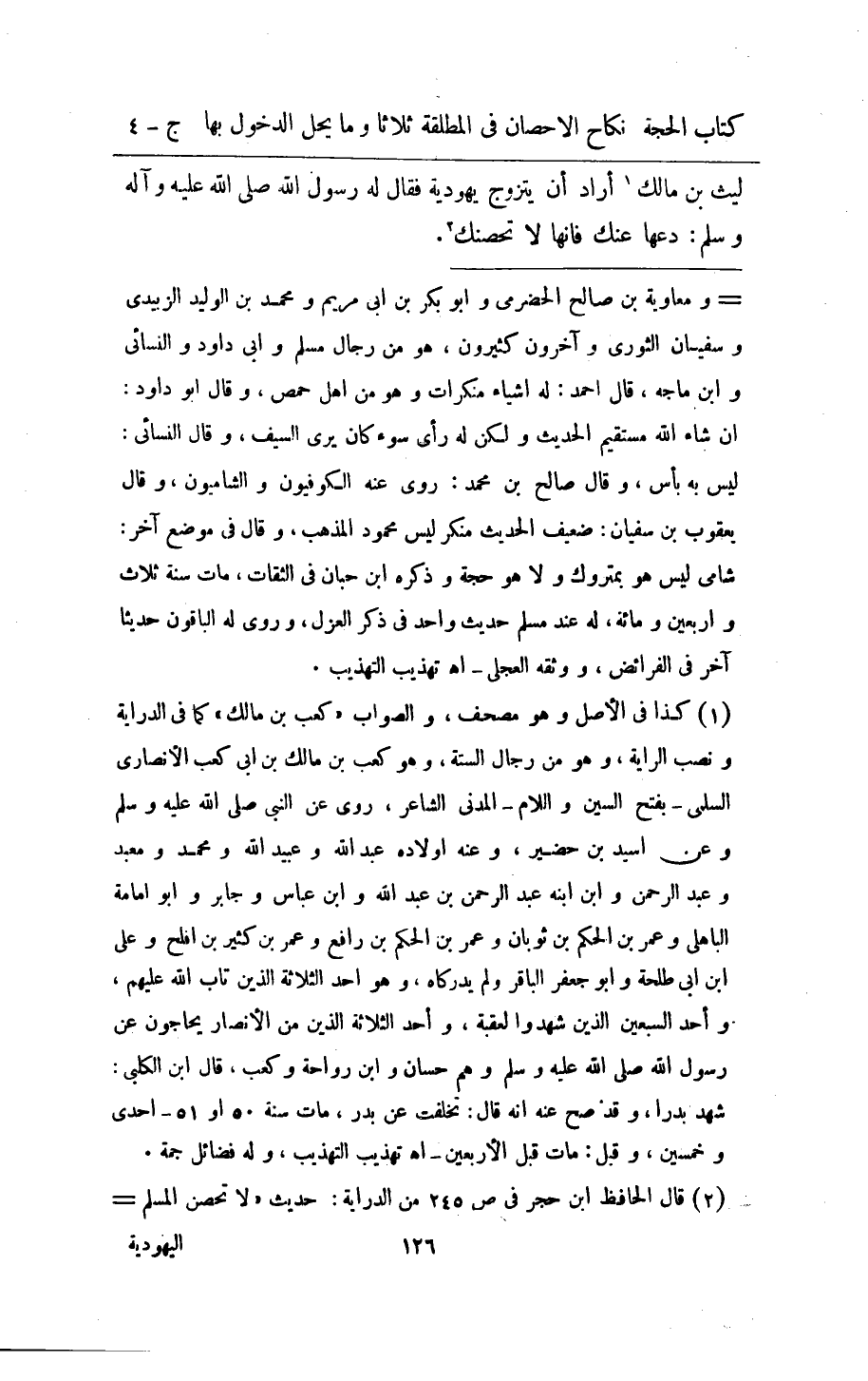صلى الله عَلَيْهِ وَسلم لَيْث بن مَالك اراد ان يتَزَوَّج يَهُودِيَّة فَقَالَ لَهُ رَسُول الله صلى الله عَلَيْهِ وَسلم دعها عَنْك فانها لَا تحصنك