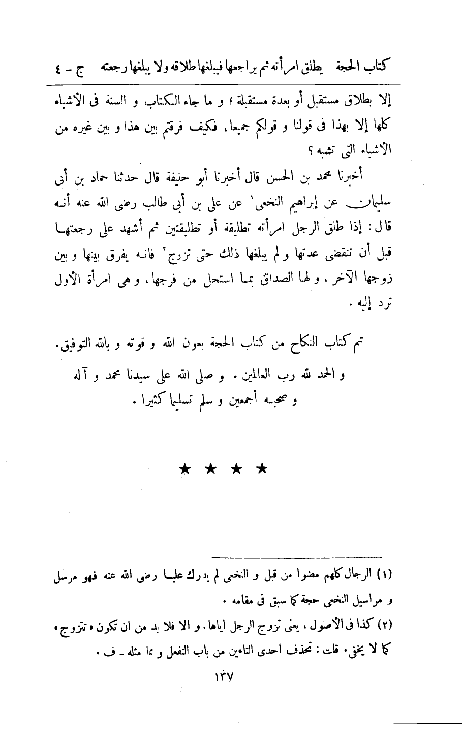 تمّ كتاب النِّكَاح من كتاب الْحجَّة بعون الله وقوته وَبِاللَّهِ التَّوْفِيق