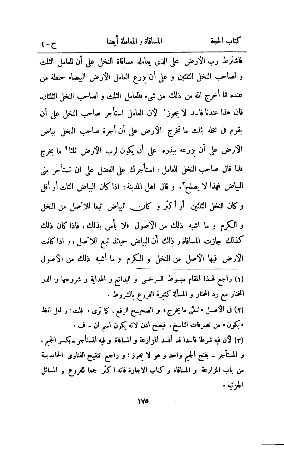 فَاشْترط رب الأَرْض على الَّذِي يعامله مُسَاقَاة النّخل على أَن لِلْعَامِلِ الثُّلُث وَلِصَاحِب النّخل الثُّلُثَانِ وعَلى أَن يزرع الْعَامِل الأَرْض الْبَيْضَاء حِنْطَة من عِنْده فَمَا اخْرُج الله من ذَلِك من شَيْء فللعامل الثُّلُث وَلِصَاحِب النّخل الثُّلُثَانِ فان هَذَا عندنَا فَاسد لَا يجوز لَان الْعَامِل اسْتَأْجر صَاحب النّخل على ان يقوم فِي نخله بِثلث مَا تخرج الارض على ان أُجْرَة صَاحب النّخل بَيَاض الأَرْض على ان يزرعه ببذره على ان يكون لرب الارض ثلثا مَا يخرج فَلَمَّا قَالَ صَاحب النّخل لِلْعَامِلِ استأجرك على الْفضل على ان تستأجر منى الْبيَاض فَهَذَا لَا يصلح وَقَالَ اهل الْمَدِينَة اذا كَانَ الْبيَاض الثُّلُث اَوْ اقل وَكَانَ النّخل الثُّلثَيْنِ اَوْ اكثر وَكَانَ الْبيَاض تبعا للْأَصْل من النّخل وَالْكَرم وَمَا اشبه ذَلِك من الْأُصُول فَلَا باس بذلك فاذا كَانَ ذَلِك كَذَلِك جَازَت الْمُسَاقَاة وَذَلِكَ ان الْبيَاض حِينَئِذٍ تبع للْأَصْل واذا كَانَت الأَرْض فِيهَا الأَصْل من النّخل وَالْكَرم وَمَا اشبه ذَلِك من الْأُصُول