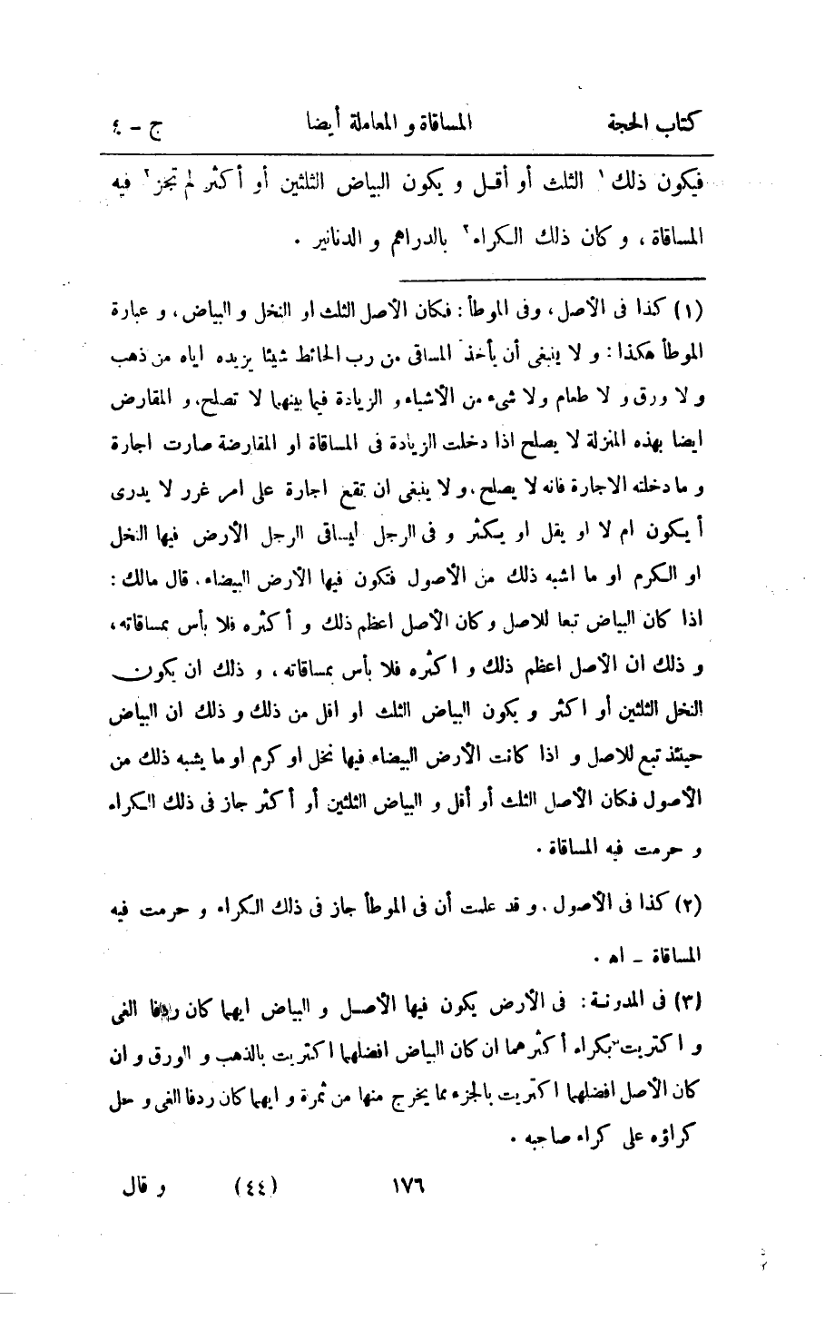 فَيكون ذَلِك الثُّلُث أَو أقل وَيكون الْبيَاض الثُّلثَيْنِ اَوْ أَكثر لم تجز فِيهِ الْمُسَاقَاة وَكَانَ ذَلِك الْكِرَاء بِالدَّرَاهِمِ وَالدَّنَانِير