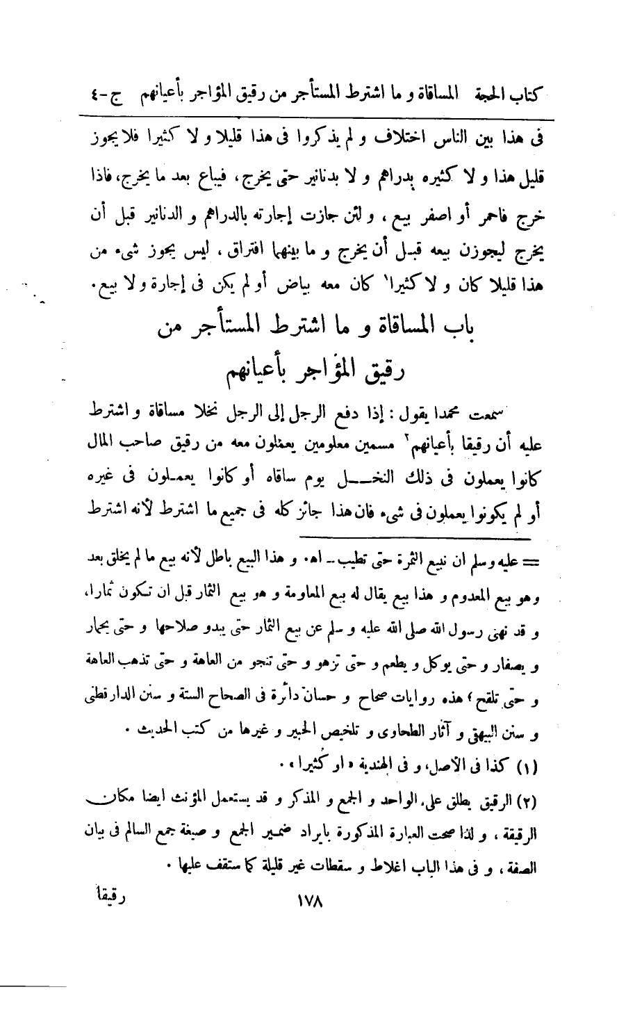 - بَاب الْمُسَاقَاة وَمَا اشْترط الْمُسْتَأْجر من رَقِيق المؤاجر بأعيانهم