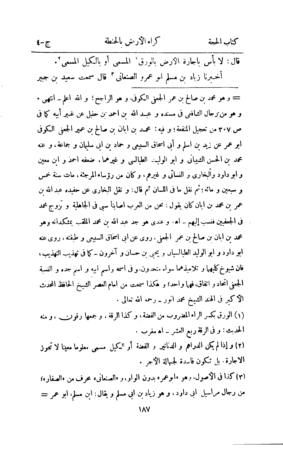 قَالَ لَا بَأْس باجاره الأَرْض بالورق الْمُسَمّى اَوْ بِالْكَيْلِ الْمُسَمّى