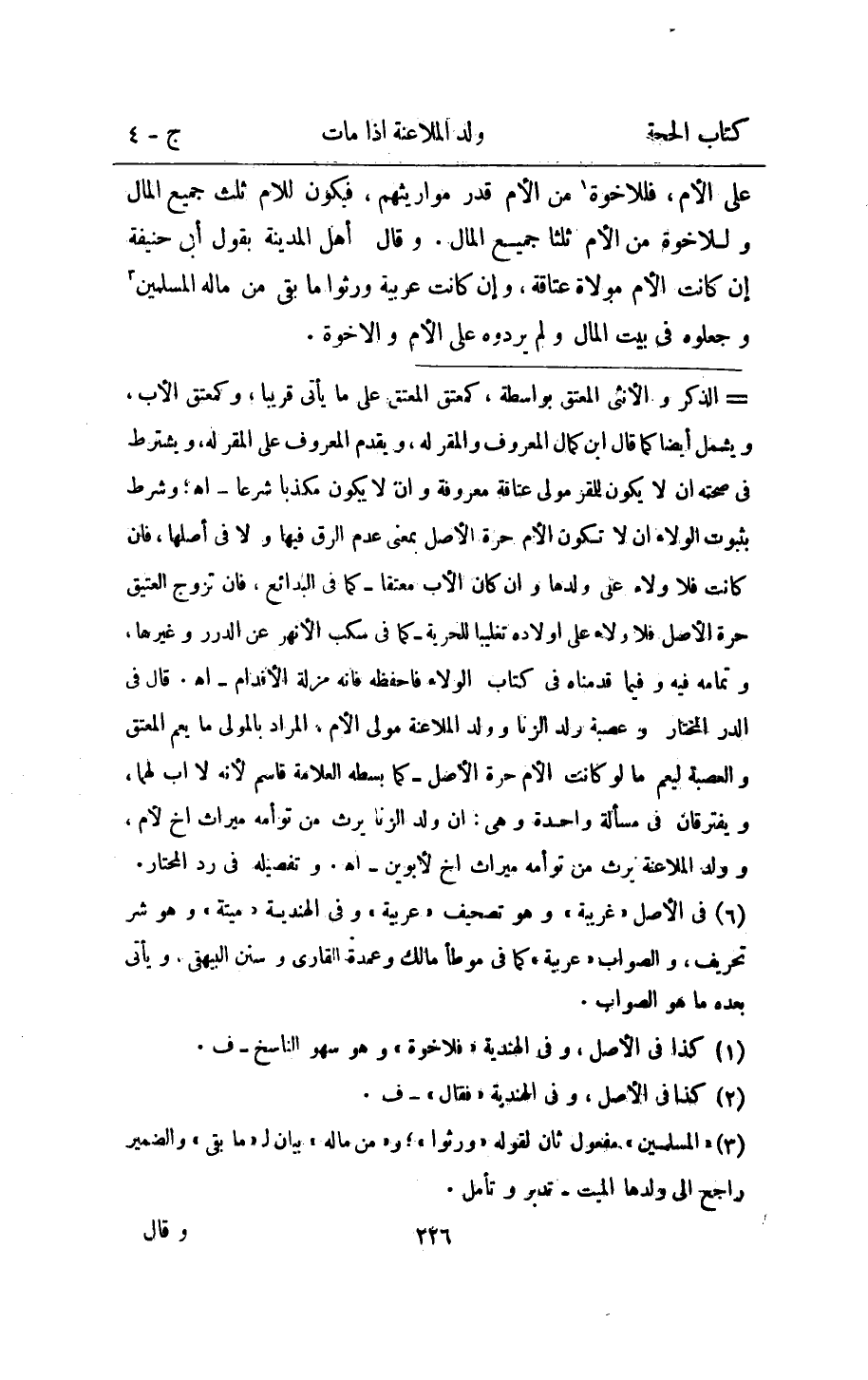 على الام فللاخوة من الام قدر مواريثهم فَيكون للام ثلث جَمِيع المَال وللاخوة من الام ثلثا جَمِيع المَال وَقَالَ اهل الْمَدِينَة بقول ابي حنيفَة ان كَانَت الام مولاة عتقاة وان كَانَت عَرَبِيَّة ورثوا مَا بَقِي من مَاله الْمُسلمين وجعلوه فِي بَيت المَال وَلم يردوه على الام والاخوة