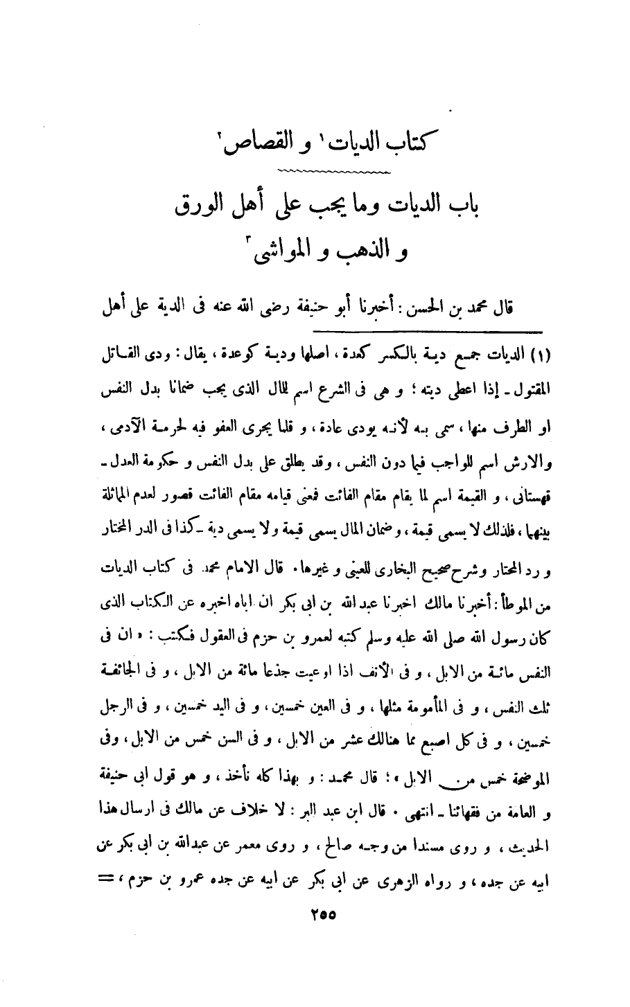 قَالَ مُحَمَّد بن الْحسن اُخْبُرْنَا ابو حنيفَة رَضِي الله عَنهُ فِي الدِّيَة على اهل