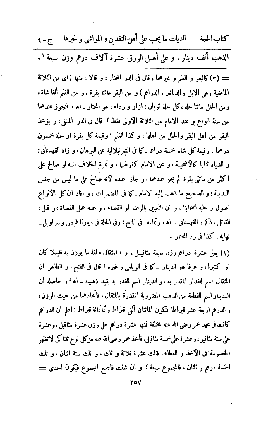 الذَّهَب الف دِينَار وعَلى اهل الْوَرق عشرَة الاف دِرْهَم وزن سَبْعَة