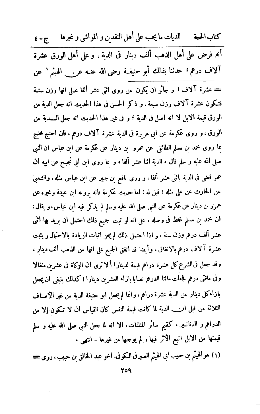 انه فرض على اهل الذَّهَب الف دِينَار فِي الدِّيَة وعَلى اهل الْوَرق عشرَة الاف دِرْهَم حَدثنَا بذلك ابو حنيفَة رَضِي الله عَنهُ عَن الْهَيْثَم عَن