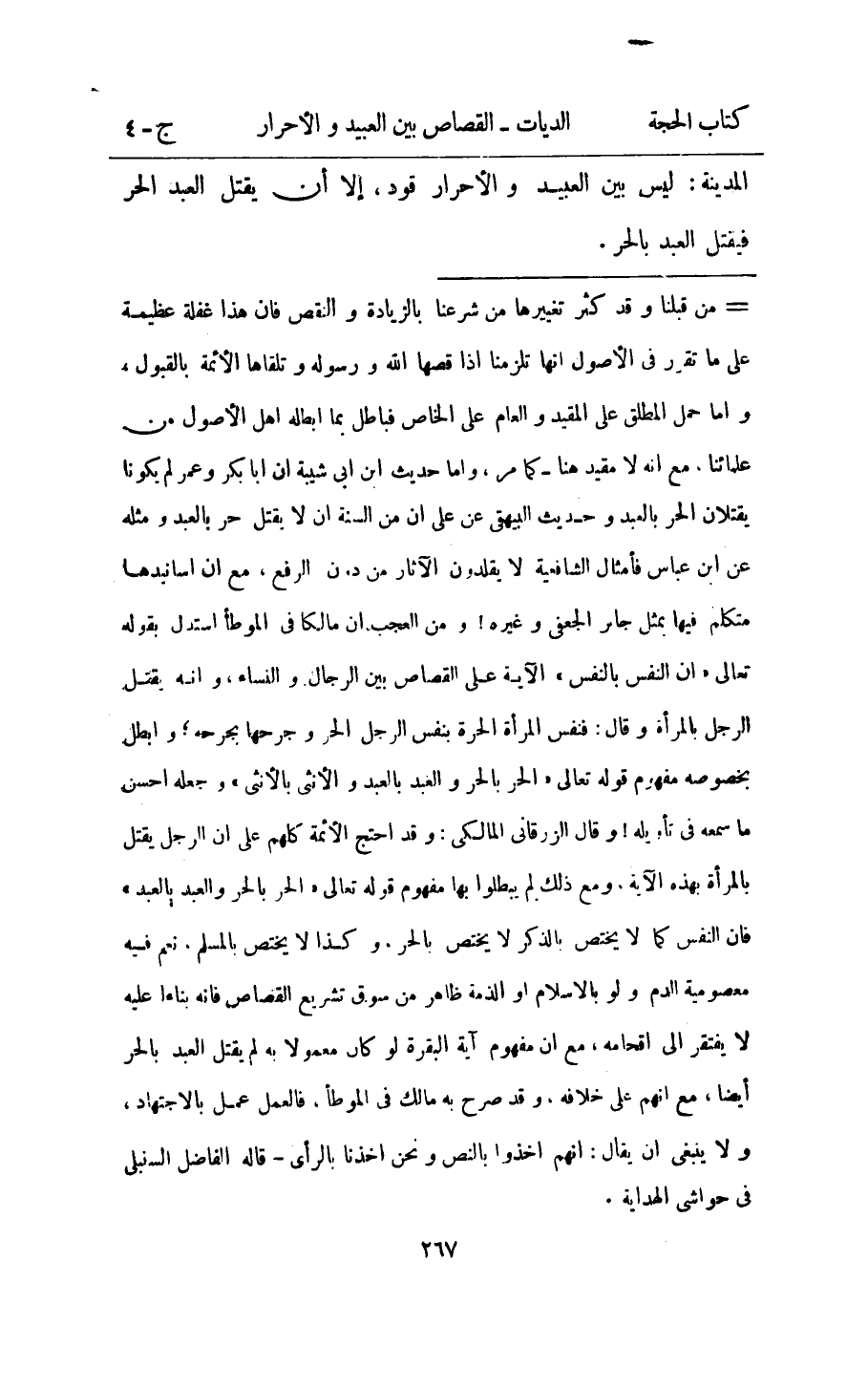 الْمَدِينَة لَيْسَ بَين العبيد والاحرار قَود الا ان يقتل العَبْد الْحر فَيقْتل العَبْد الْحر