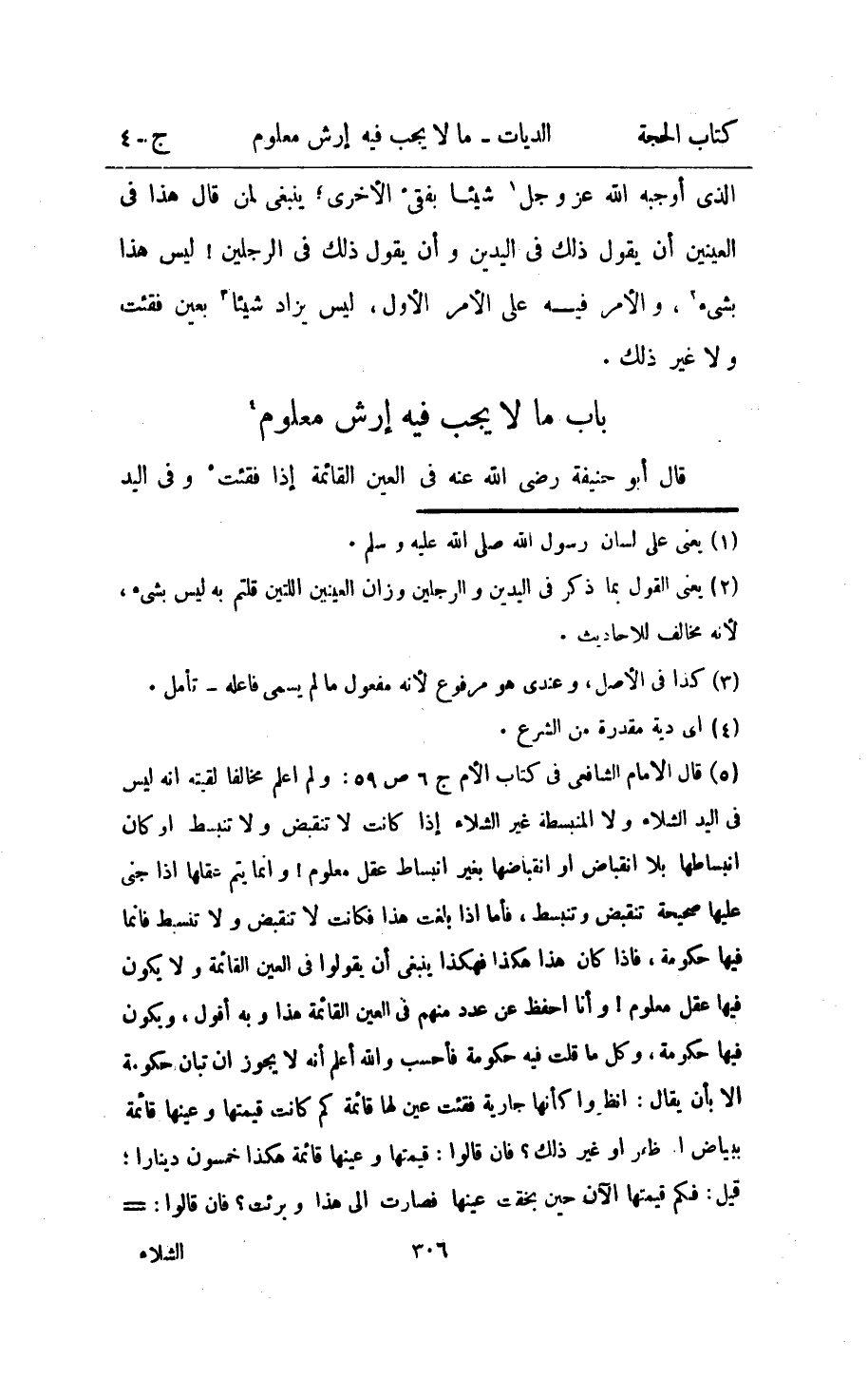 - بَاب مَا لَا يجب فِيهِ ارش مَعْلُوم