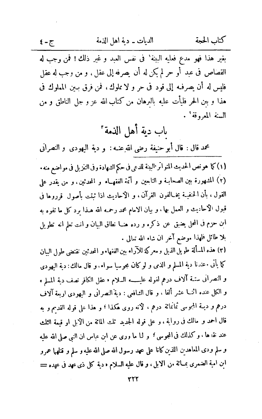 مُحَمَّد قَالَ قَالَ ابو حنيفَة رَضِي الله عَنهُ ودية الْيَهُودِيّ وَالنَّصْرَانِيّ