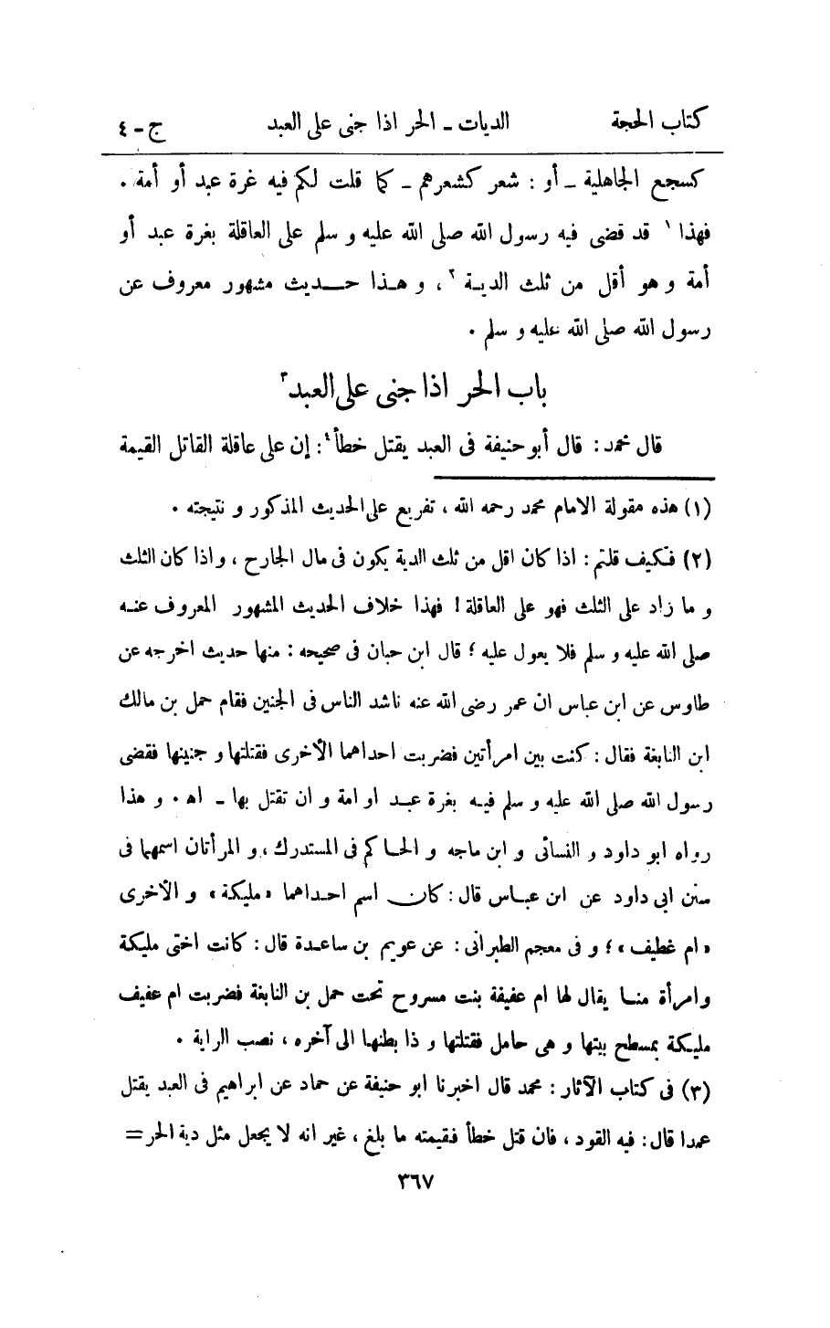 - بَاب الْحر اذا جنى على العَبْد