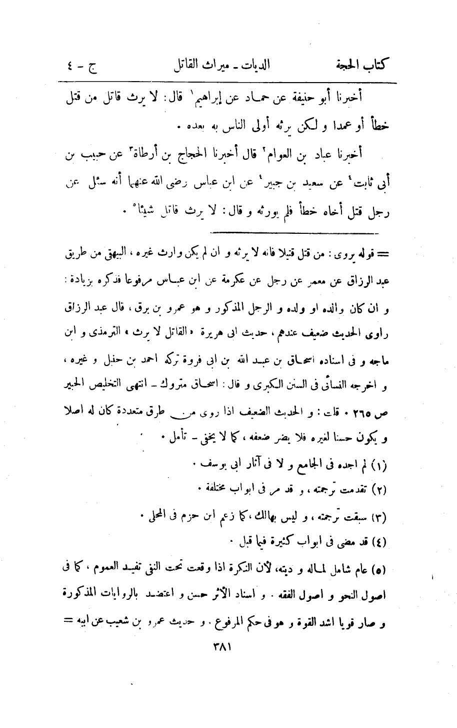 اُخْبُرْنَا عباد بن الْعَوام قَالَ اُخْبُرْنَا الْحجَّاج بن ارطاة عَن حبيب بن ابي ثَابت عَن سعيد بن جُبَير عَن ابْن عَبَّاس رَضِي الله عَنْهُمَا انه سُئِلَ عَن رجل قتل اخاه خطا فَلم يورثه وَقَالَ لَا يَرث قَاتل شَيْئا