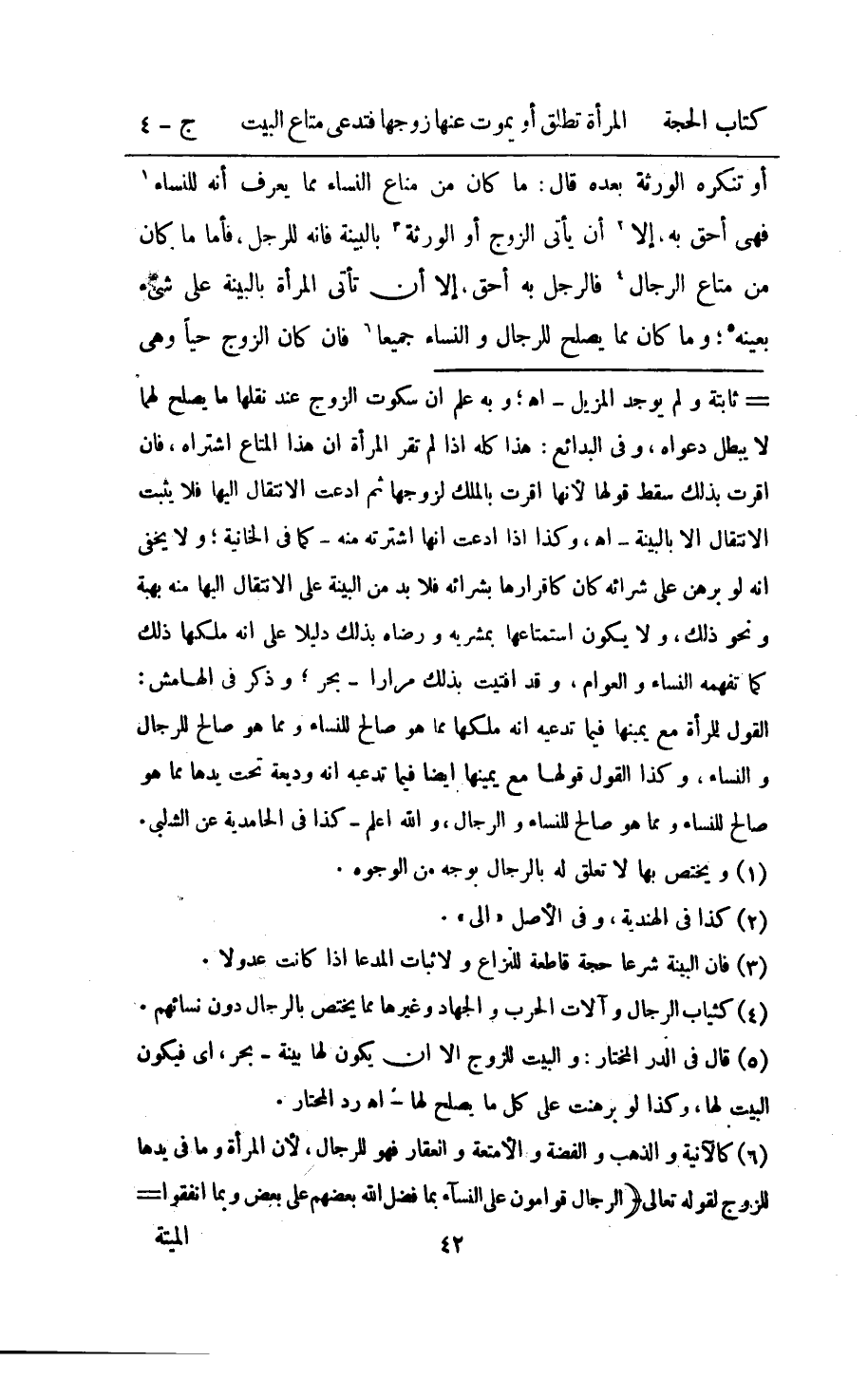اَوْ تنكره الْوَرَثَة بعده قَالَ مَا كَانَ من مناع النِّسَاء مِمَّا يعرف انه للنِّسَاء فَهِيَ احق بِهِ الا ان يَأْتِي الزَّوْج أَو الْوَرَثَة بِالْبَيِّنَةِ فانه للرجل فَأَما مَا كَانَ من مَتَاع الرِّجَال فالرجل بِهِ أَحَق إِلَّا أَن تَأتي الْمَرْأَة الْبَيِّنَة على شَيْء بِعَيْنِه وَمَا كَانَ مِمَّا يصلح للرِّجَال وَالنِّسَاء جَمِيعًا فان كَانَ الزَّوْج حَيا وَهِي