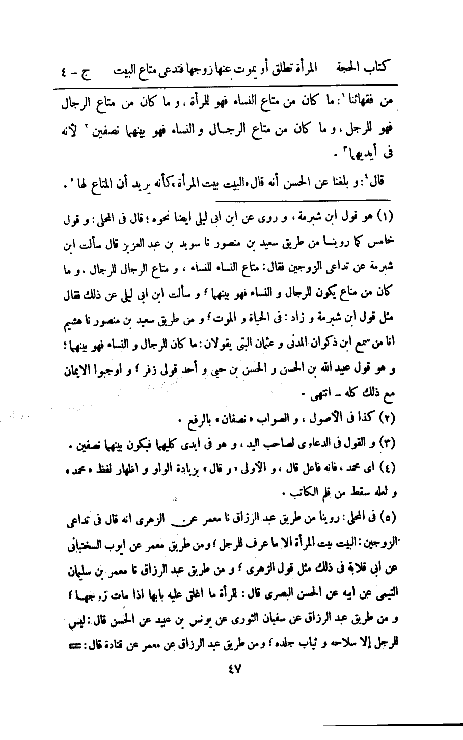 من فقهائنا مَا كَانَ من مَتَاع النِّسَاء فَهُوَ للْمَرْأَة وَمَا كَانَ من مَتَاع الرِّجَال فَهُوَ للرجل وَمَا كَانَ من مَتَاع الرِّجَال وَالنِّسَاء فَهُوَ بَينهمَا نِصْفَيْنِ لانه فِي ايديهما