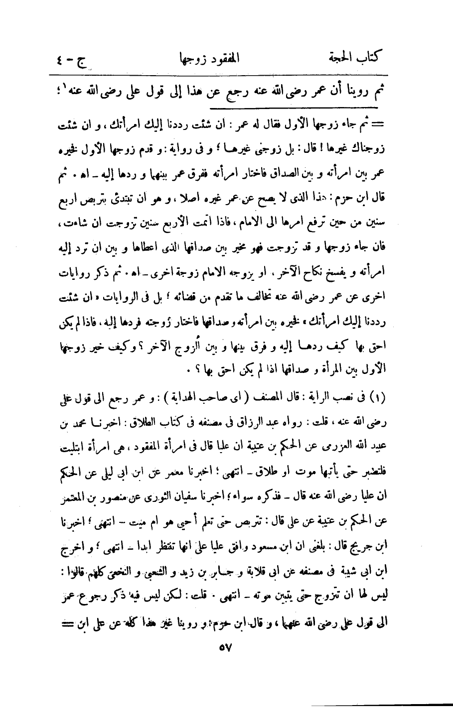 ثمَّ روينَا ان عمر رَضِي الله عَنهُ رَجَعَ عَن هَذَا الى قَول عَليّ رَضِي الله عَنهُ