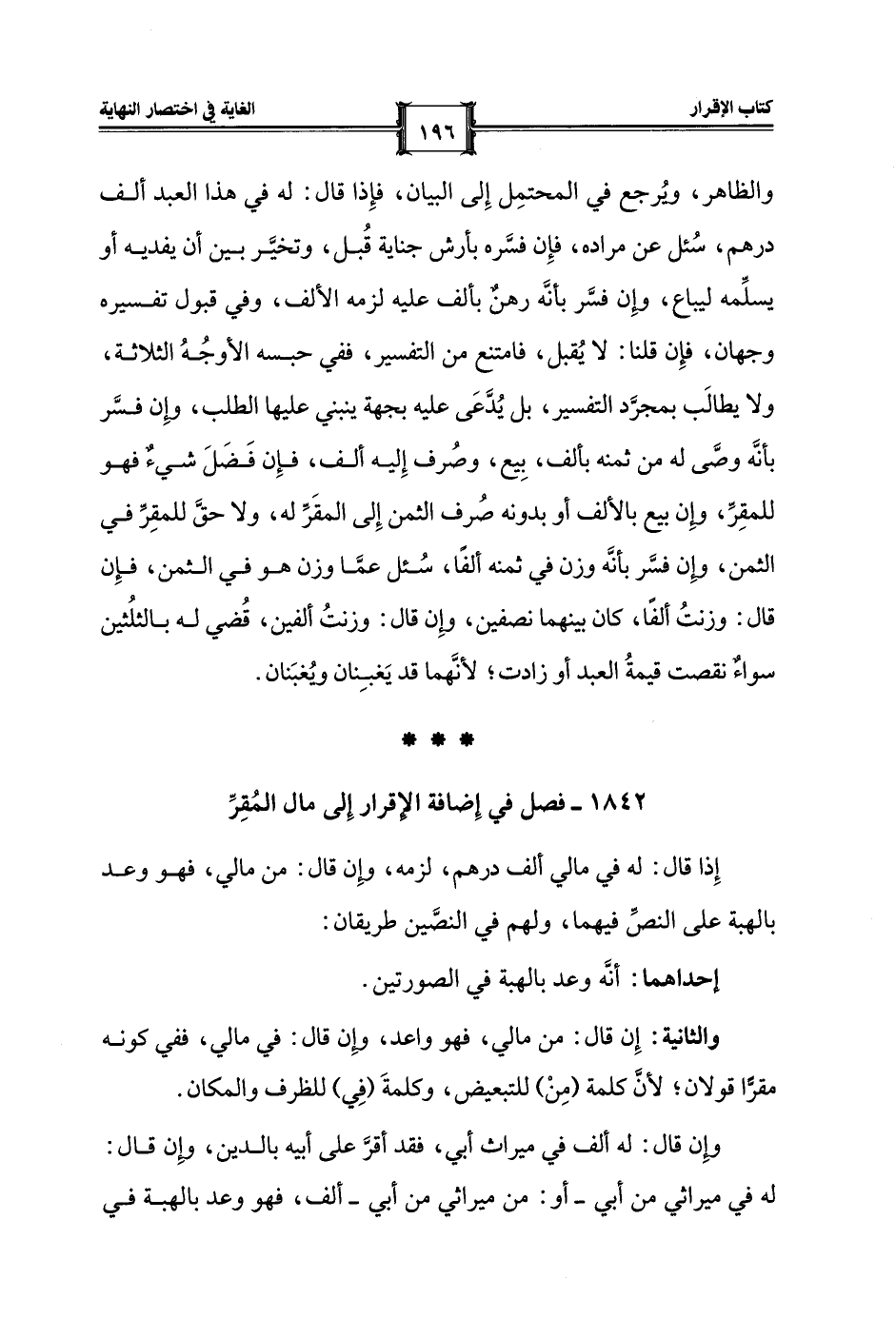 1842 - فصل في إِضافة الإقرار إِلى مال المُقِرِّ