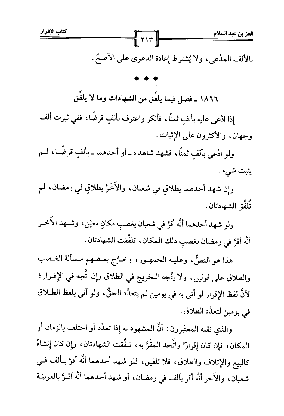 1866 - فصل فيما يلفَّق من الشهادات وما لا يلفَّق