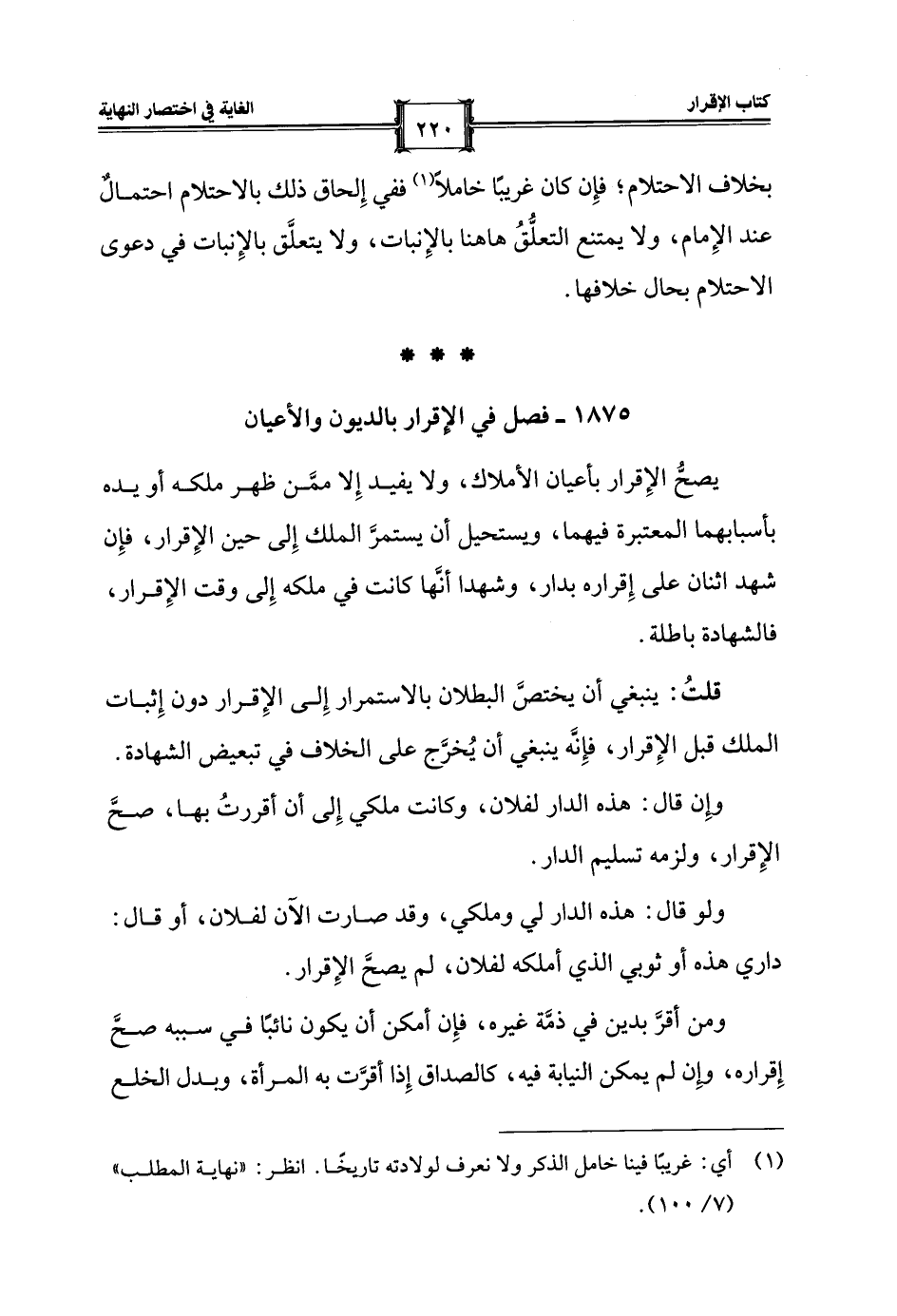 1875 - فصل في الإقرار بالديون والأعيان