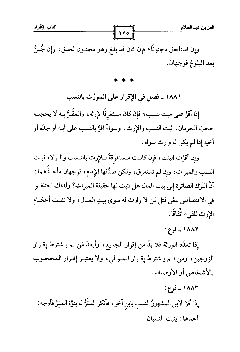 1881 - فصل في الإقرار على المورِّث بالنسب