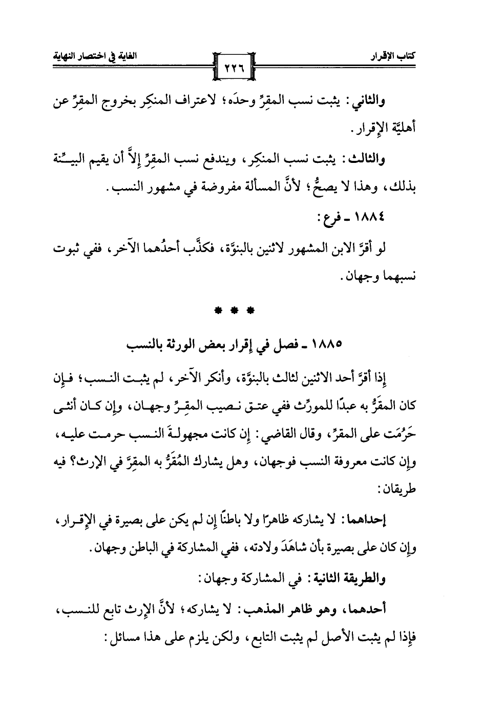 1885 - فصل في إِقرار بعض الورثة بالنسب