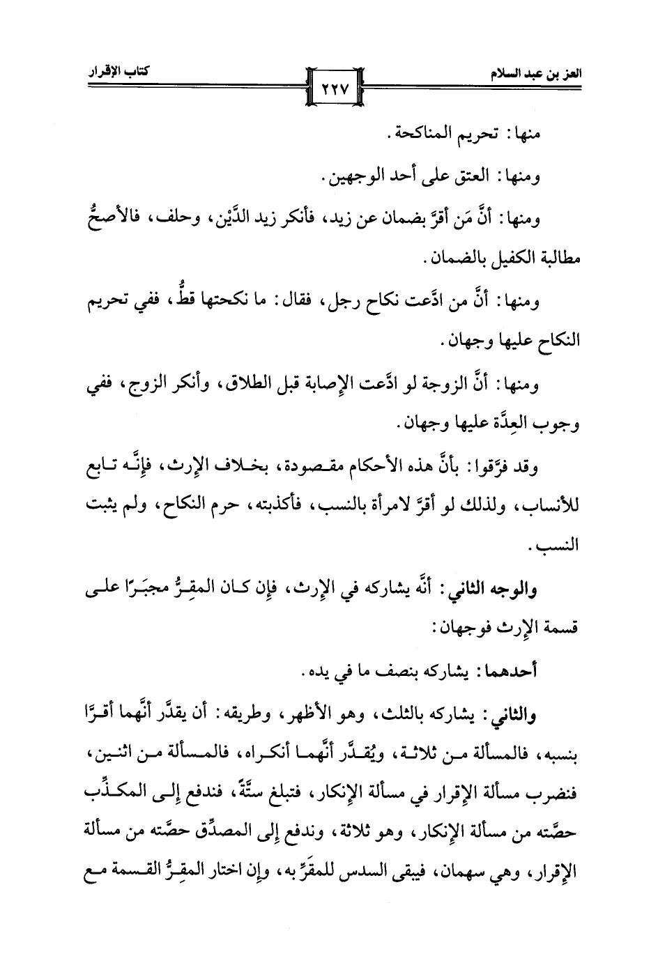 والوجه الثاني: أنَّه يشاركه في الإِرث، فإِن كان المقِرُّ مجبَرًا على قسمة الإِرث فوجهان: