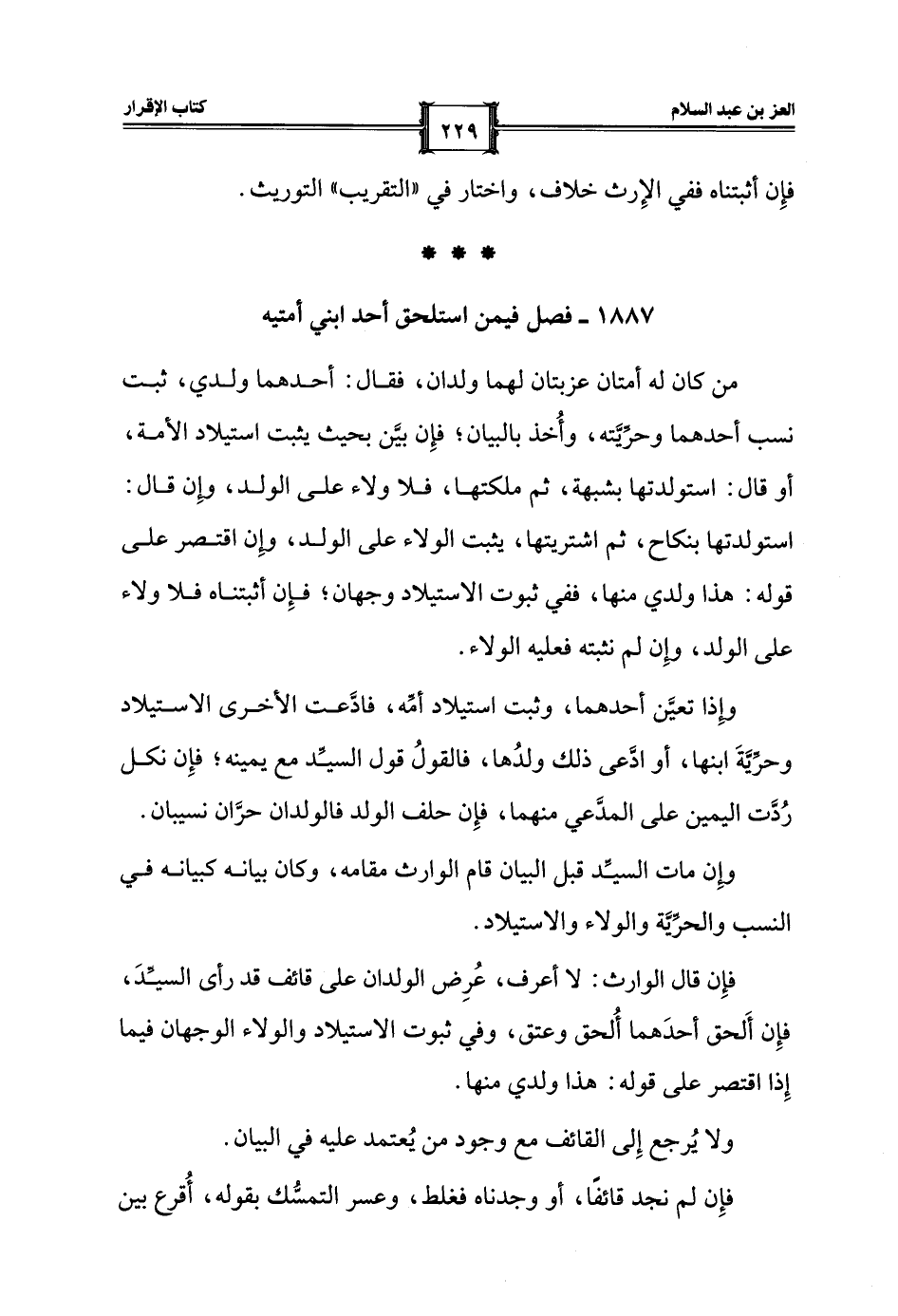 1887 - فصل فيمن استلحق أحد ابني أمتيه