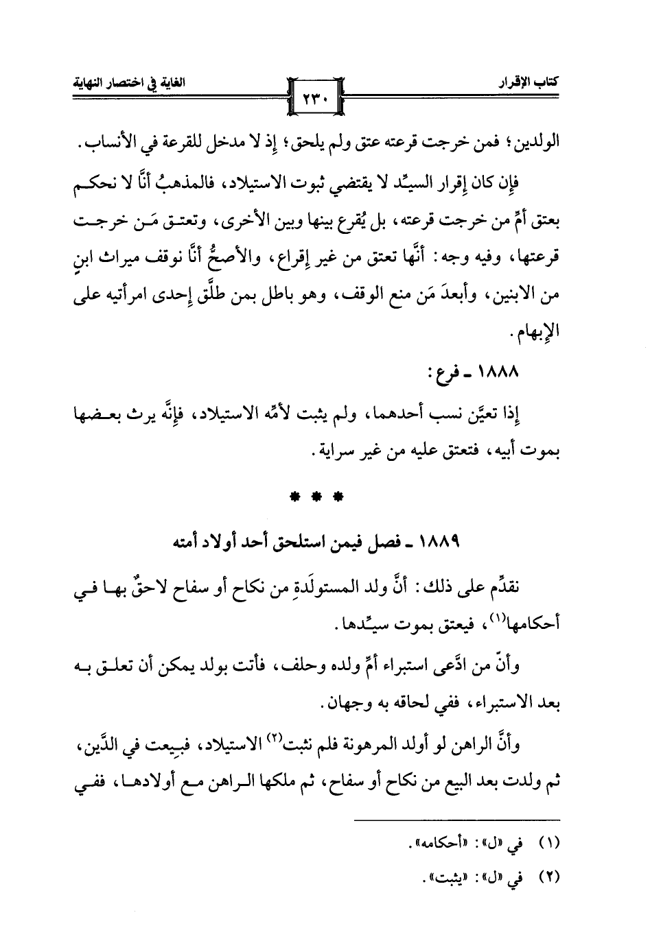 1889 - فصل فيمن استلحق أحد أولاد أمته
