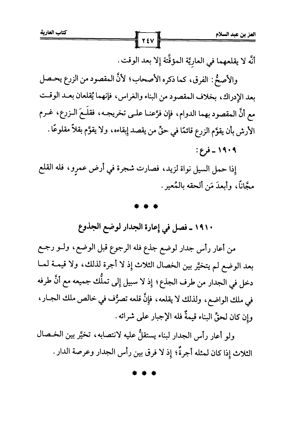 1910 - فصل في إِعارة الجدار لوضع الجذوع