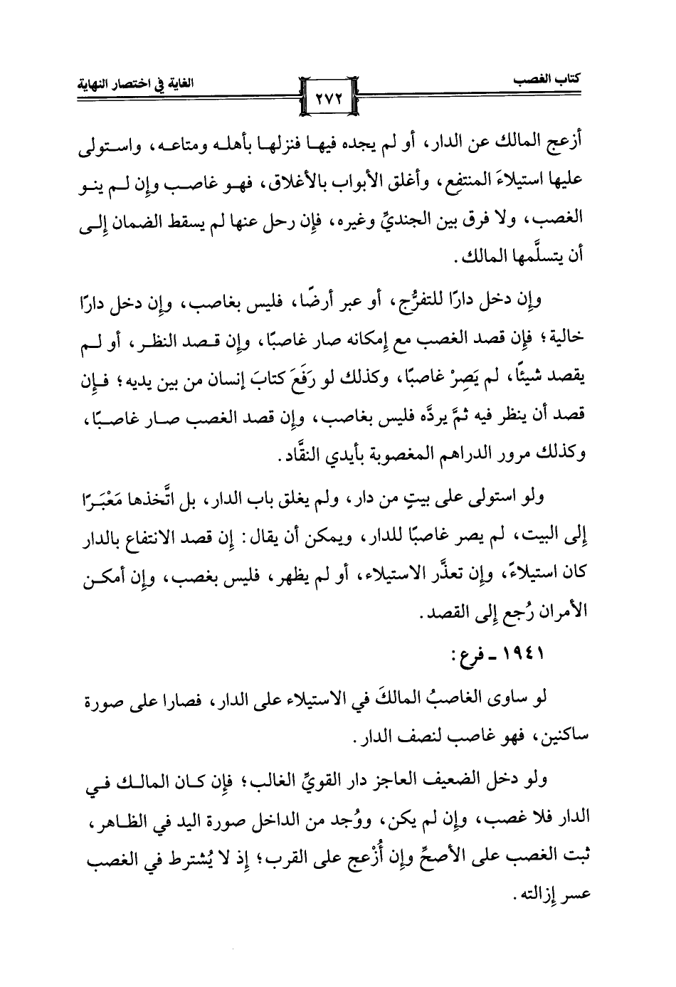 وإِن دخل دارًا للتفرُّج، أو عبر أرضًا، فليس بغاصب، وإِن دخل دارًا خالية؛ فإِن قصد الغصب مع إِمكانه صار غاصبًا، وإِن قصد النظر، أو لم يقصد شيئًا، لم يَصِرْ غاصبًا، وكذلك لو رَفَعَ كتابَ إنسان من بين يديه؛ فإِن قصد أن ينظر فيه ثمَّ يردَّه فليس بغاصب، وإِن قصد الغصب صار غاصبًا، وكذلك مرور الدراهم المغصوبة بأيدي النقَّاد.