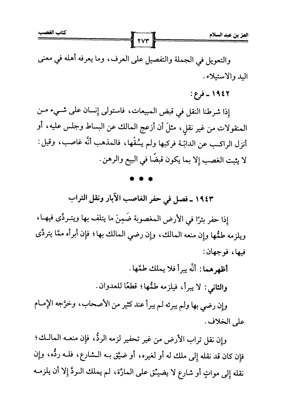 1943 - فصل في حفر الغاصب الآبار ونقل التراب