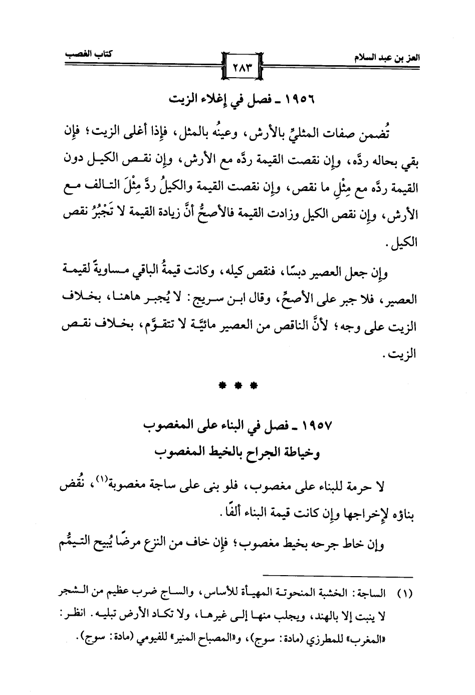 1957 - فصل في البناء على المغصوب وخياطة الجراح بالخيط المغصوب