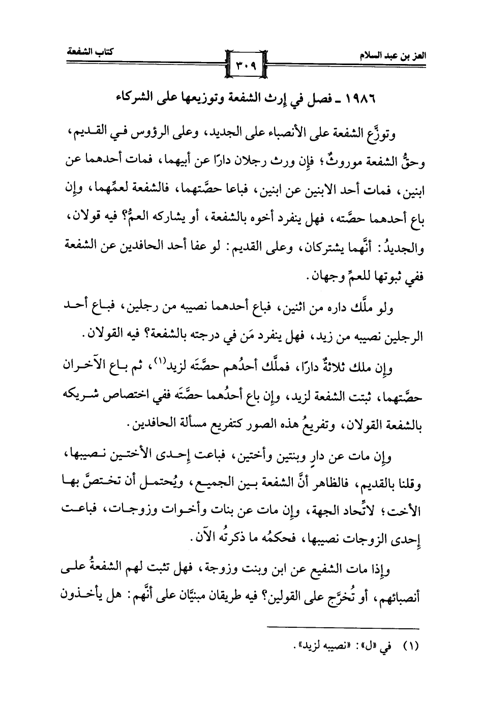 1986 - فصل في إِرث الشفعة وتوزيعها على الشركاء