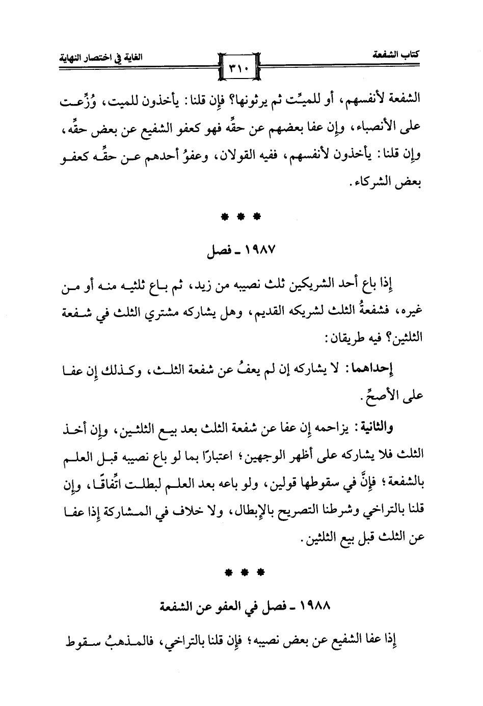 الشفعة لأنفسهم، أو للميِّت ثم يرثونها؟ فإِن قلنا: يأخذون للميت، وُزِّعت على الأنصباء، وإِن عفا بعضهم عن حقِّه فهو كعفو الشفيع عن بعض حقِّه، وإِن قلنا: يأخذون لأنفسهم، ففيه القولان، وعفوُ أحدهم عن حقِّه كعفو بعض الشركاء.