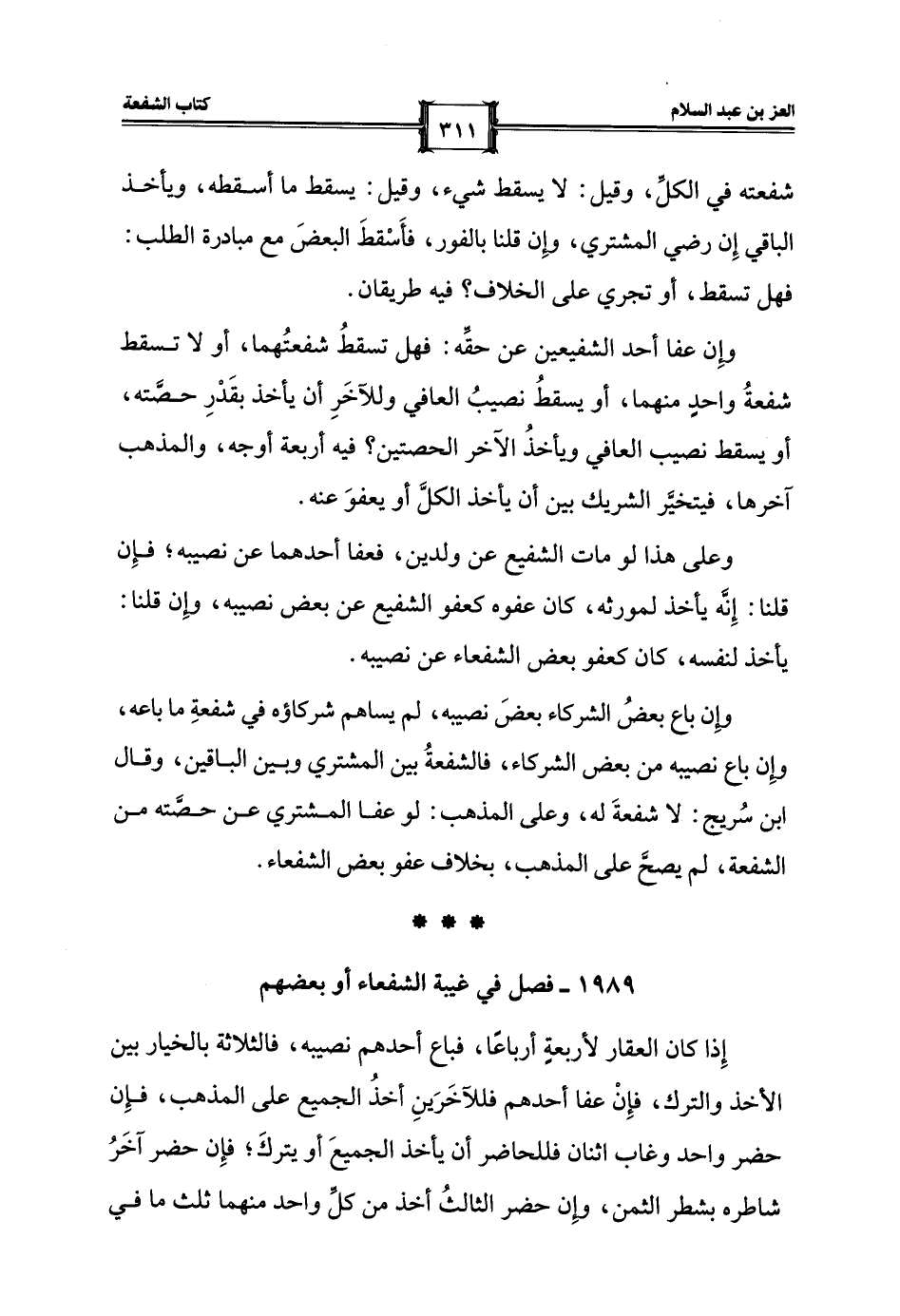 1989 - فصل في غيبة الشفعاء أو بعضهم