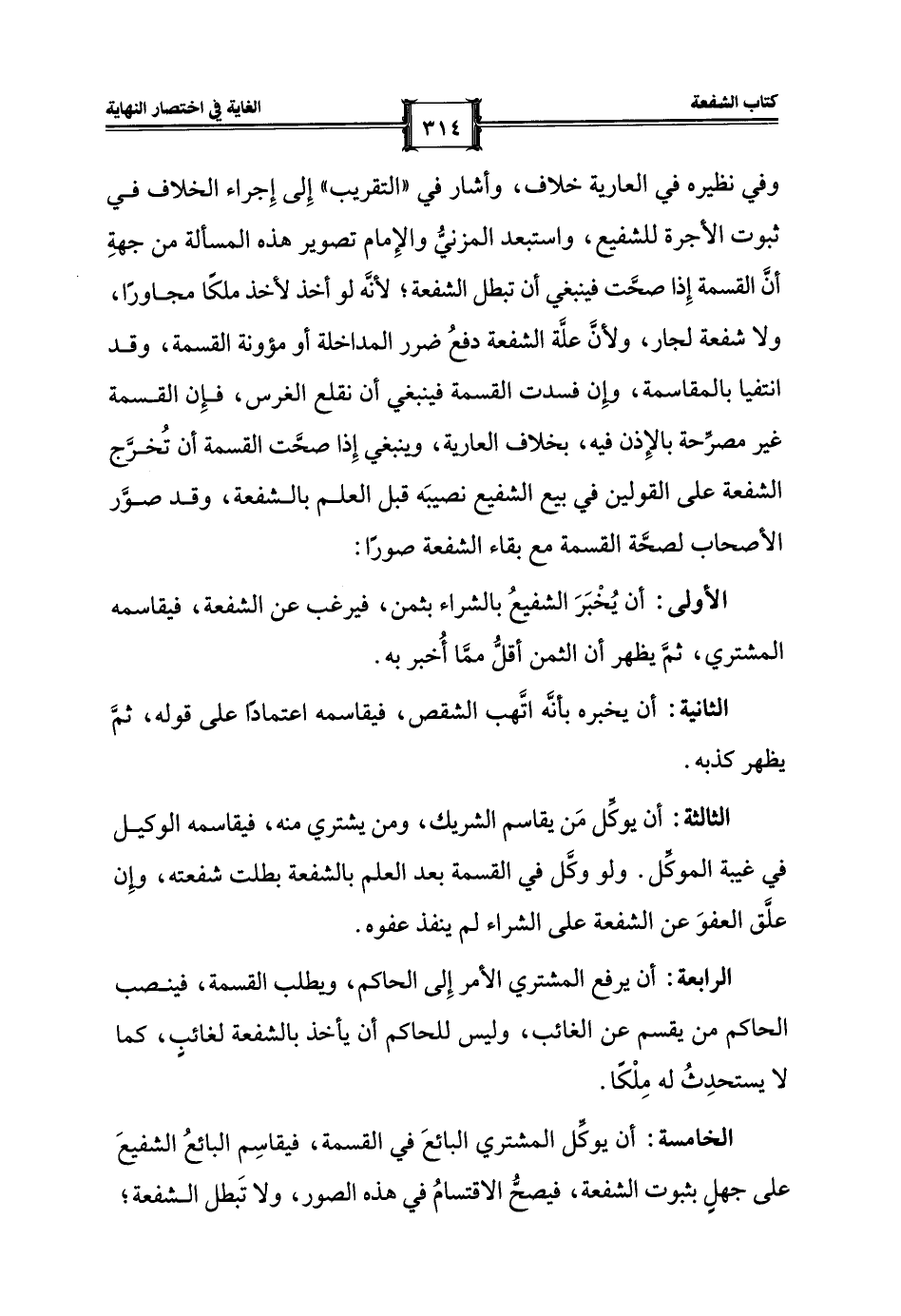 الخامسة: أن يوكِّل المشتري البائعَ في القسمة، فيقاسِم البائعُ الشفيعَ على جهلٍ بثبوت الشفعة، فيصحُّ الاقتسامُ في هذه الصور، ولا تَبطل الشفعة؛