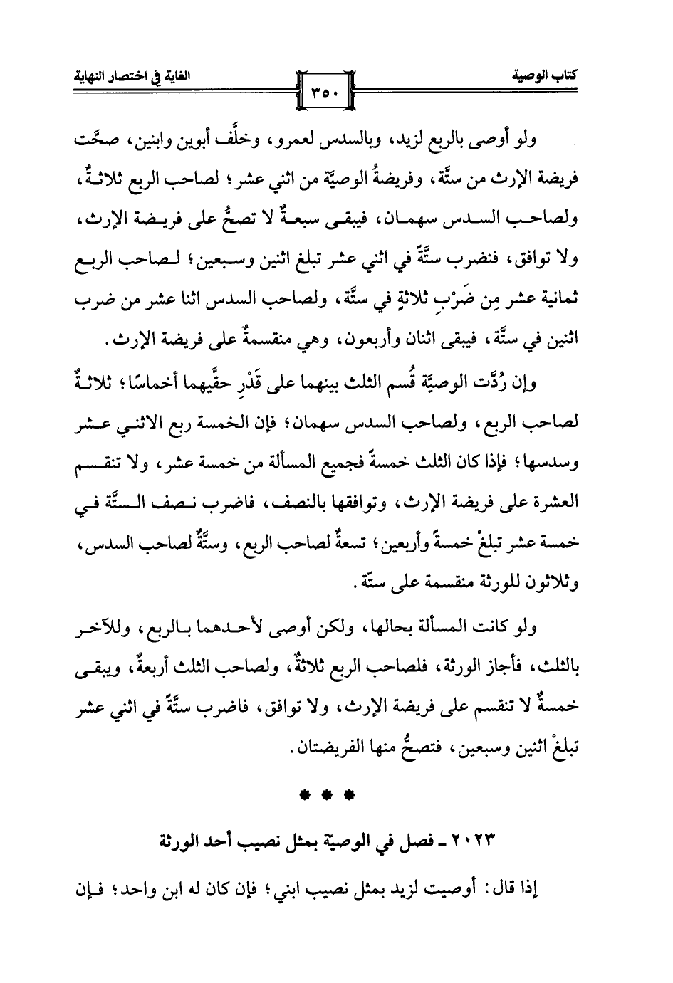 2023 - فصل في الوصيّة بمثل نصيب أحد الورثة
