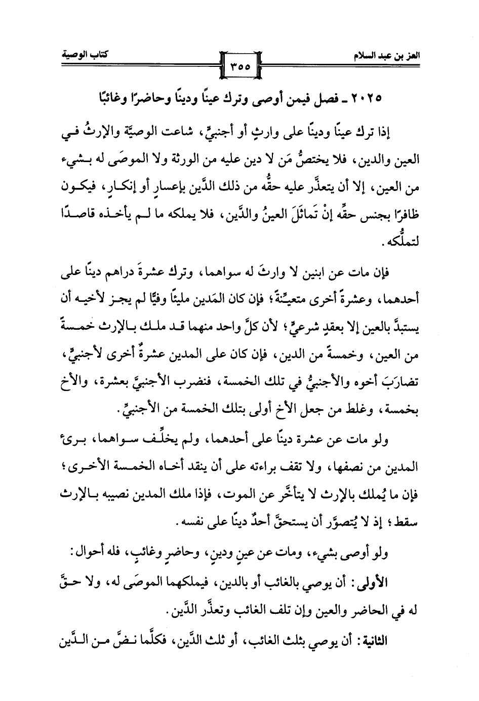 2025 - فصل فيمن أوصى وترك عينًا ودينًا وحاضرًا وغائبًا