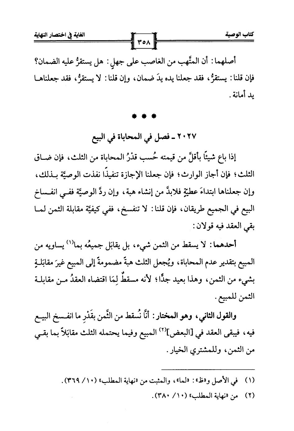 (¬1) في الأصل و"ظ": "لما"، والمثبت من "نهاية المطلب" (15/ 369).