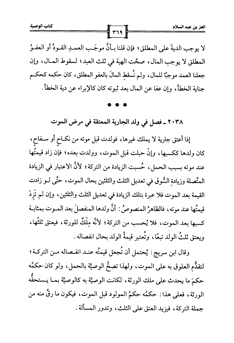 2038 - فصل في ولد الجارية المعتقة في مرض الموت