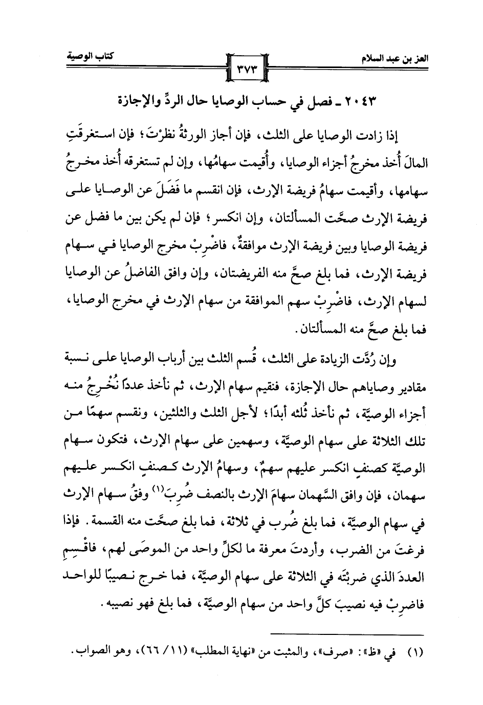 2043 - فصل في حساب الوصايا حال الردِّ والإجازة