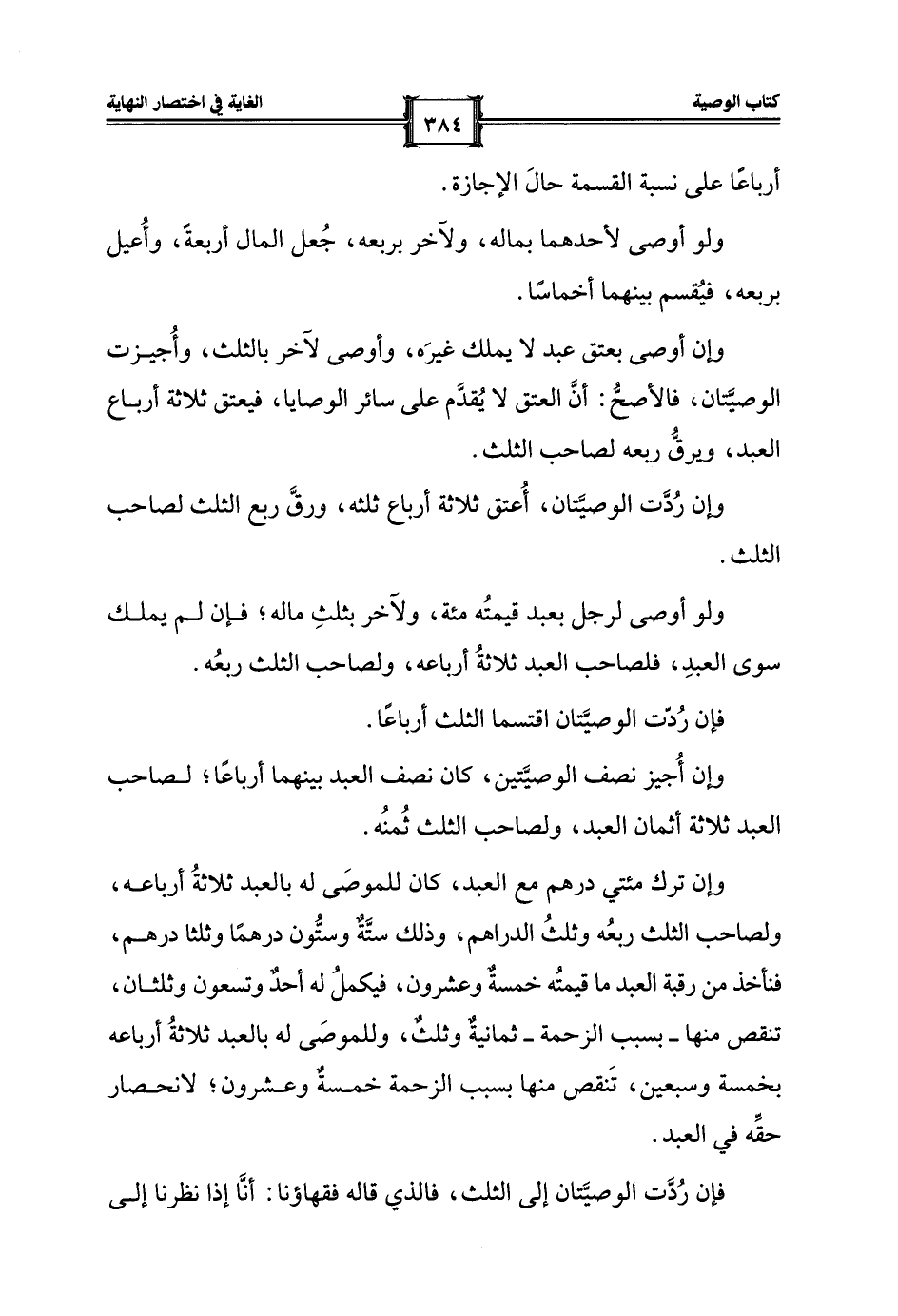 فإن رُدّت الوصيَّتان اقتسما الثلث أرباعًا.
