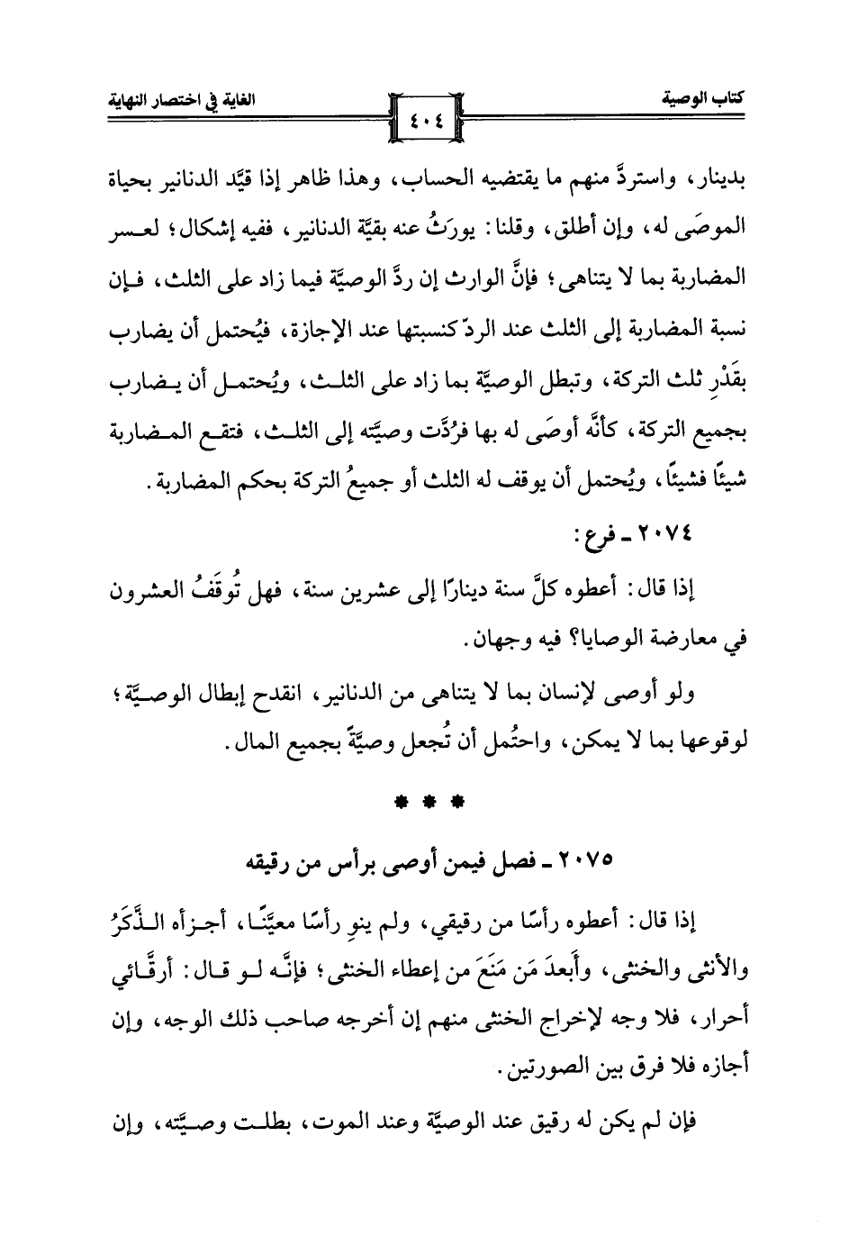 2075 - فصل فيمن أوصى برأس من رقيقه