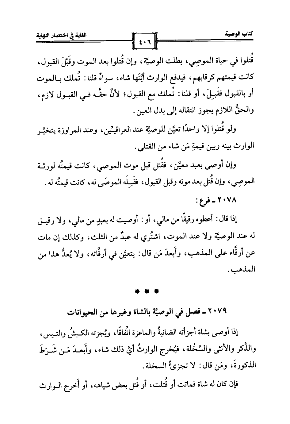 2079 - فصل في الوصيَّة بالشاة وغيرها من الحيوانات