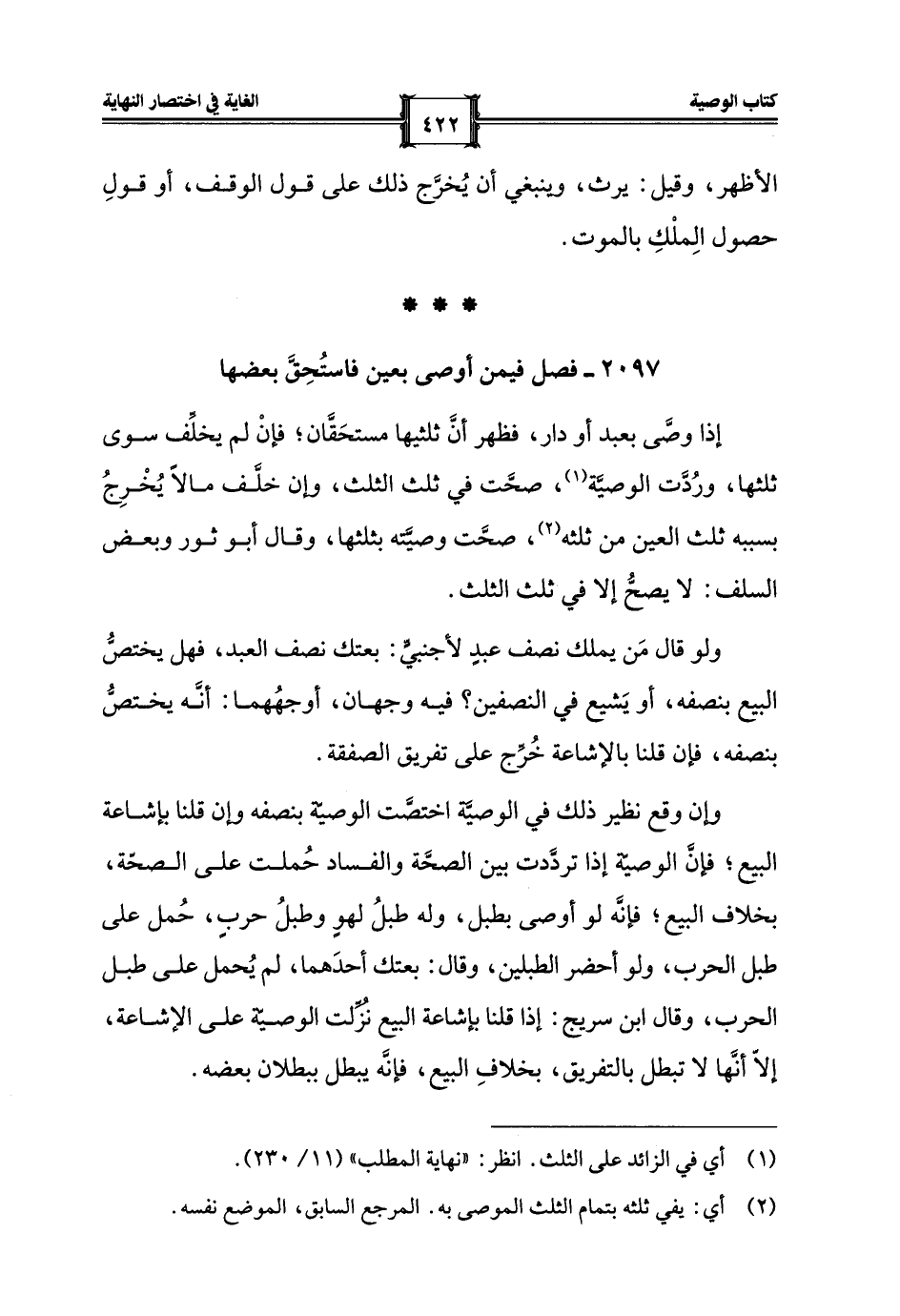 (¬1) أي في الزائد على الثلث. انظر: "نهاية المطلب" (11/ 230).