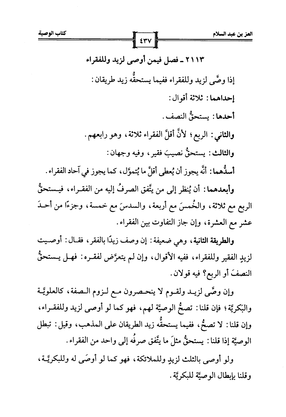 2113 - فصل فيمن أوصى لزيد وللفقراء