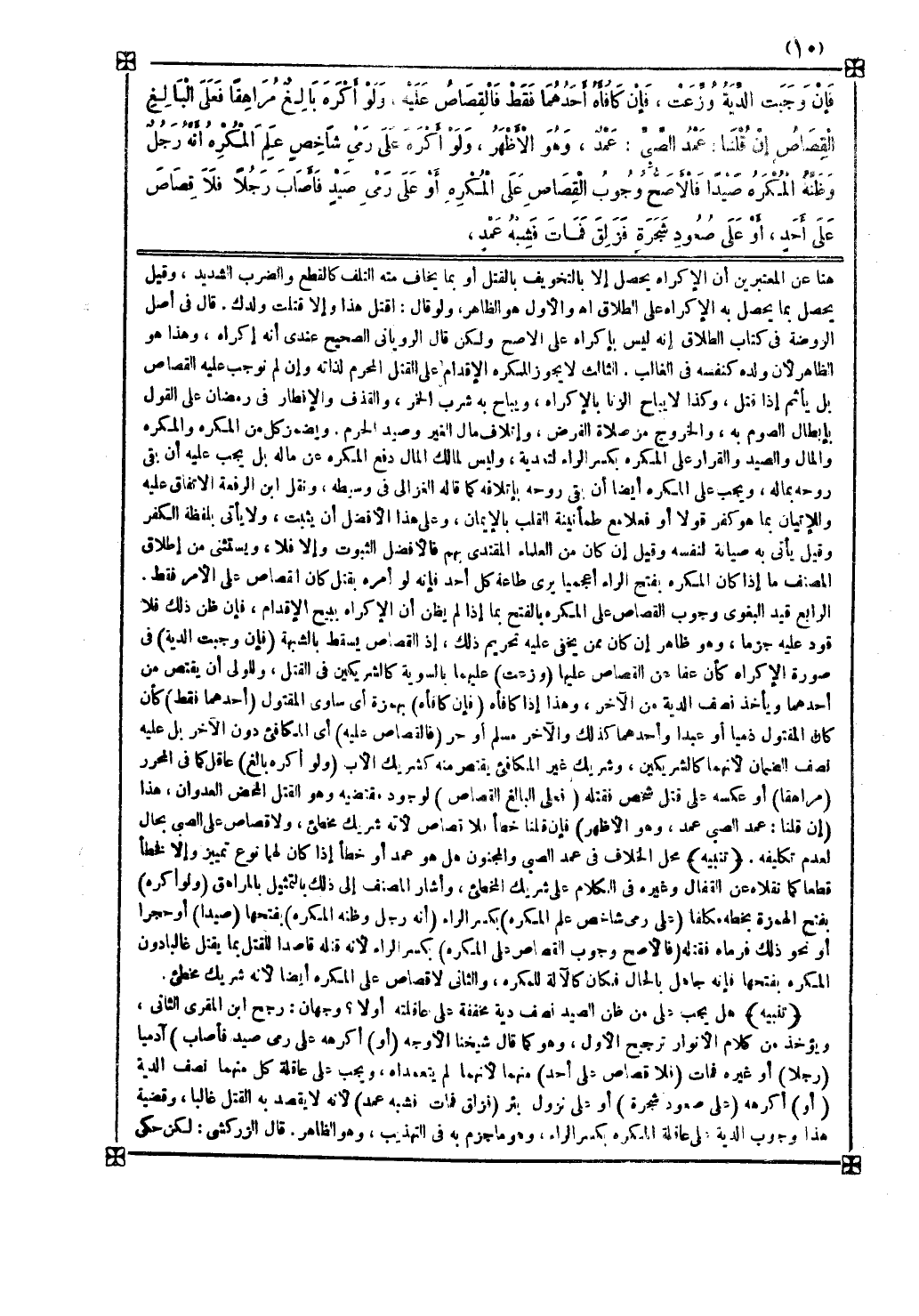 الرابع قيد البغوي وجوب القصاص على المكره بالفتح بما إذا لم يظن أن الإكراه يبيح الإقدام فإن ظن ذلك فلا قود عليه جزما