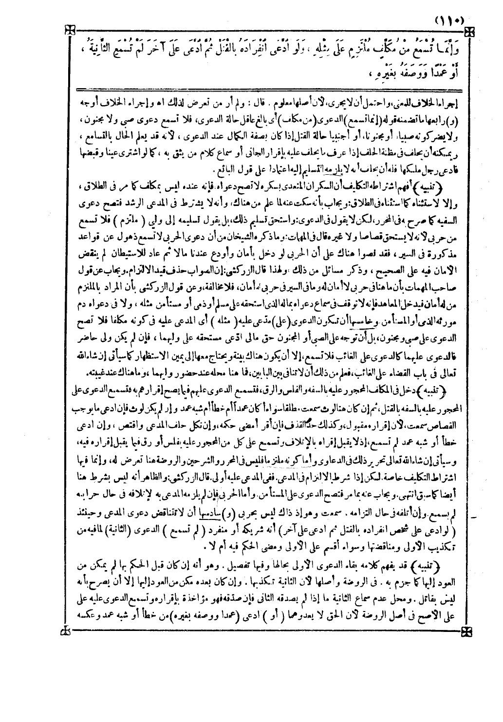 تنبيه دخل في المكلف المحجور عليه بالسفه والفلس والرق فتسمع الدعوى عليهم فيما يصح إقرارهم به فتسمع الدعوى على المحجور عليه بالسفه بالقتل ثم إن كان هنا لوث سمعت مطلقا سواء أكان عمدا أم خطأ أم شبه عمد وإن لم يكن لوث فإن ادعى ما يوجب القصاص سمعت لأن إقراره مقبول وكذلك حد القذف فإن أقر أمضى حكمه وإن نكل حلف المدعى واقتص وإن ادعى خطأ أو شبه عمد لم تسمع إذ لا يقبل إقراره بالإتلاف وتسمع على كل من المحجور عليه بفلس أو رق فيما يقبل إقراره فيه وسيأتي إن شاء الله تعالى تحرير ذلك في الدعاوى وأما كونه ملتزما فليس في المحرر والشرحين والروضة هنا تعرض له وإنما فيها اشتراط التكليف خاصة