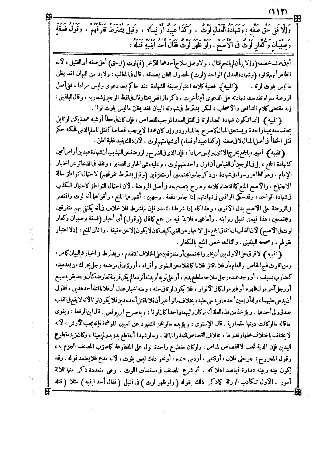 تنبيه إنما تكون شهادة العدل لوثا في القتل العمد الموجب للقصاص فإن كان في خطأ أو شبه عمد لم يكن لوثا بل يحلف معه يمينا واحدة ويستحق المال كما صرح به الماوردي وإن كان عمدا لا يوجب قصاصا كقتل المسلم الذمي فحكمه حكم قتل الخطأ في أصل المال لا في صفته ( وكذا عبيد أو نساء ) أي شهادتهم لوث لأن ذلك يفيد غلبة الظن